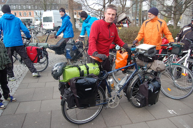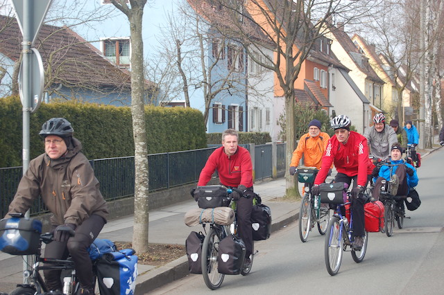 Gegen 10 Uhr startet eine Gruppe von 20 Radlern. Die meisten Fahrer begleiten Peter Smolka über die Osterfeiertage bis nach Zittau. Gertrud Härer, Walter Költsch und Jörg Gruner radeln über St. Petersburg mit bis zur Erlanger Partnerstadt Wladimir östlich von Moskau (3600 km).