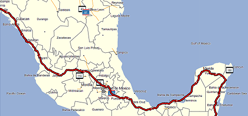 Auf dem Weg zur Yucatán-Halbinsel zeichnet sich ab, dass ich in Mexiko wohl doch nirgendwo auf den Bus umsteigen muss. Die gefährlichsten Gebiete ließen sich bisher weiträumig umfahren, und auf der Halbinsel ist keine Gefahr mehr zu erwarten.