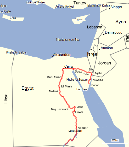 Der "natürliche Heimweg" von Ägypten nach Europa würde über Jordanien und Syrien in die Türkei führen. Doch nach Syrien kann man derzeit nicht überland einreisen (jedenfalls nicht von Süden kommend), ebenso wenig in den Irak weiter im Osten oder nach Libyen im Westen. Schon lange ist klar, dass ich einen Weg über das Mittelmeer finden muss. (Flüge will ich auf dieser Weltumradlung auf jeden Fall vermeiden, darüber habe ich in früheren Berichten ja schon oft genug philosophiert - z.B. hier: Der lange Freitag.)