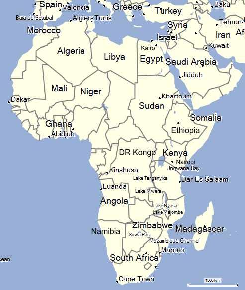 Hier in Kapstadt stehe ich an der Südwestspitze des Kontinents. Das nächste große Zwischenziel ist Kairo, quasi "schräg oben gegenüber", im Nordosten Afrikas. Unter den Grußschreiben an alle Erlanger Partnerstädte steckt auch eines an Istanbul in meinen Packtaschen. Ich werde also nicht etwa über Marokko nach Europa zurückkehren, sondern über Ägypten. Da mein Weg aber bereits zwei Mal durch Afrikas Osten führte (1992/93 (Erlangen-Kapstadt) und 2001 (Auftakt der ersten Weltumradlung)), wollte ich mich diesmal zunächst weiter im Westen halten, durch Angola und den Kongo fahren und mich erst auf der Höhe des Äquators nach Osten orientieren.