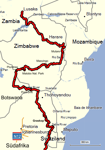 Wir sind sehr gespannt, was uns da drüben erwartet, und haben uns auf Mangel eingestellt. "No money, no fuel, no food" hatte es mehrfach geheißen. Das Land hat in den letzten Jahrzehnten in ständigem Auf und Ab gelebt. Unter der weißen Regierung im damaligen Rhodesien wurde die schwarze Bevölkerungsmehrheit unterdrückt. Aber auch nach dem Sturz dieser Regierung 1980 und der Umbenennung nach "Zimbabwe" hat das Land viele Turbulenzen erlebt. Der neue Präsident Mugabe gab sich den Weißen gegenüber zunächst versöhnlich - auch, weil er wusste, dass Zimbabwe noch über lange Zeit auf deren Know-how angewiesen sein würde. Anfang 2000 zwangen ihn jedoch innenpolitische Probleme, die lang schon angekündigte Landenteignung umzusetzen. Sie machte den Landraub während der Kolonialzeit rückgängig. Doch sie geschah zu abrupt, außerdem ohne Kompensation für die auf den Farmen errichtete Infrastruktur - die meisten Weißen verließen Zimbabwe, und viele neue Kleingrundbesitzer standen auf den zerschlagenen Farmen unausgebildet und ratlos da.