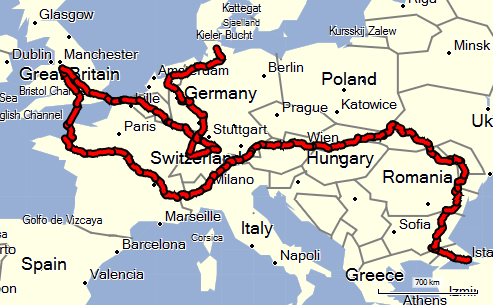 Um das Pensum bis Mitte Juni zu schaffen zu, bin ich seit Istanbul mit dem eineinhalbfachen Tempo unterwegs. Von dem Überraschungsbesuch bei meiner Tante wissen nur ihre Tochter, mein Bruder und meine Schwester. Die neulich skizzierte Route nach Schweden auf dieser Homepage ...